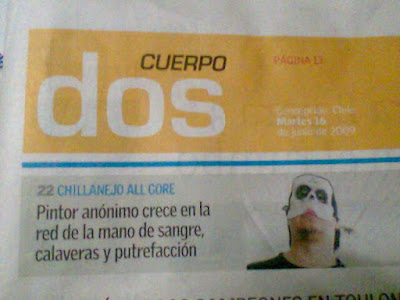 Articulos en periodicos de la mano de sangre, calaveras y putrefaccion